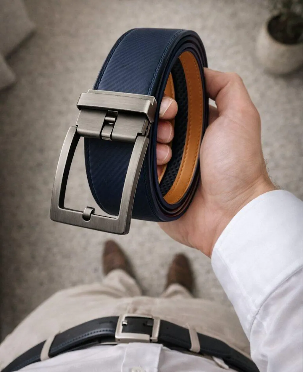 Leren Riem Zonder Gaatjes met Kliksysteem – Volnerf Leer – Carbon Blue