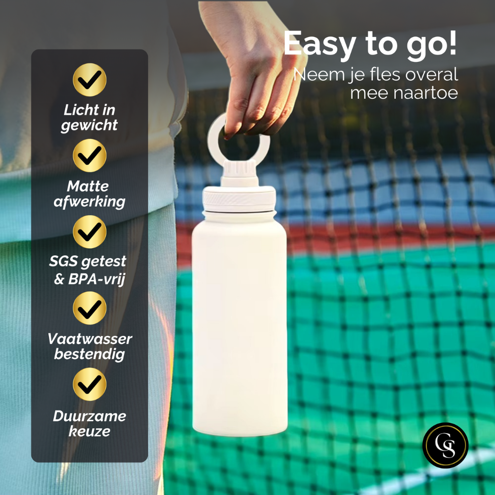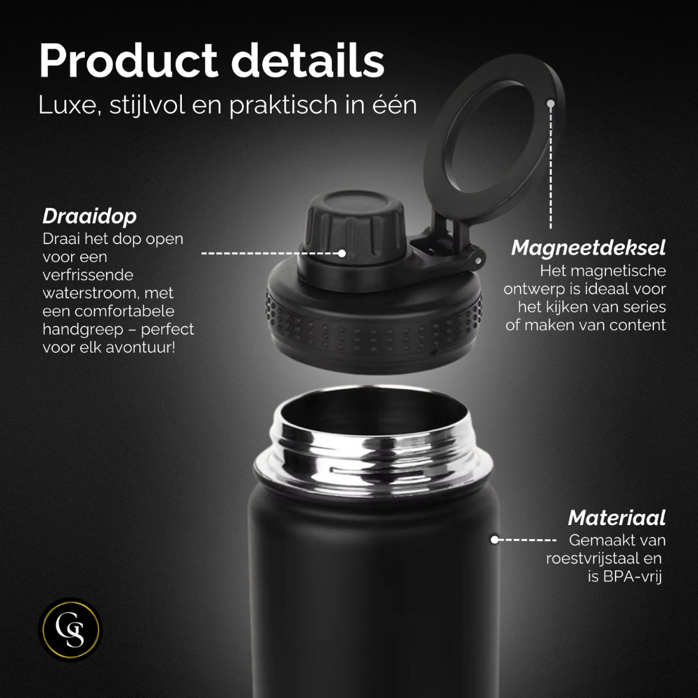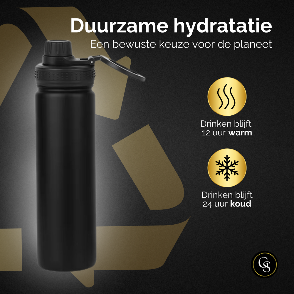 De GoldStandard waterfles combineert stijl, functionaliteit en duurzaamheid in één strak design.